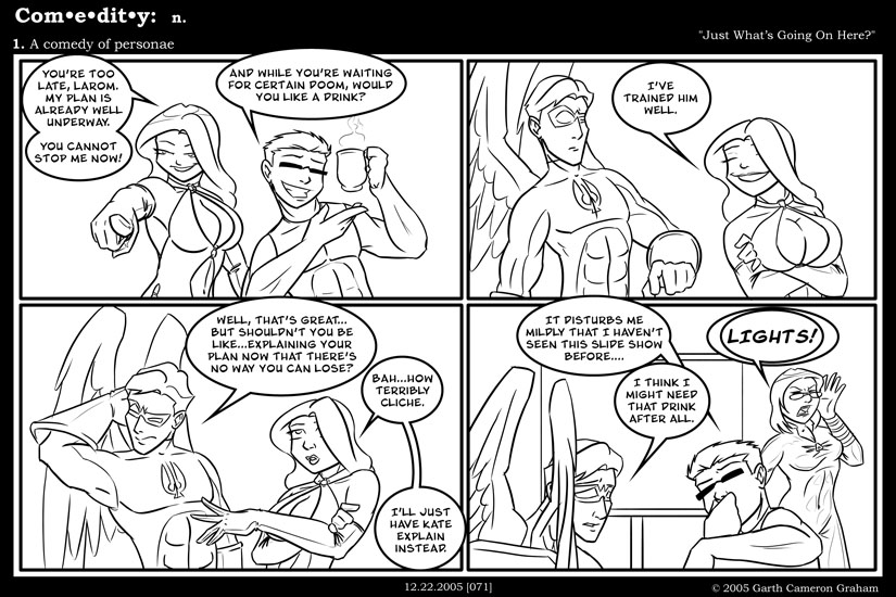 Comedity shall resume its shecualed publications on the 2nd. Things may or may not crop up in the intermittent time frame.